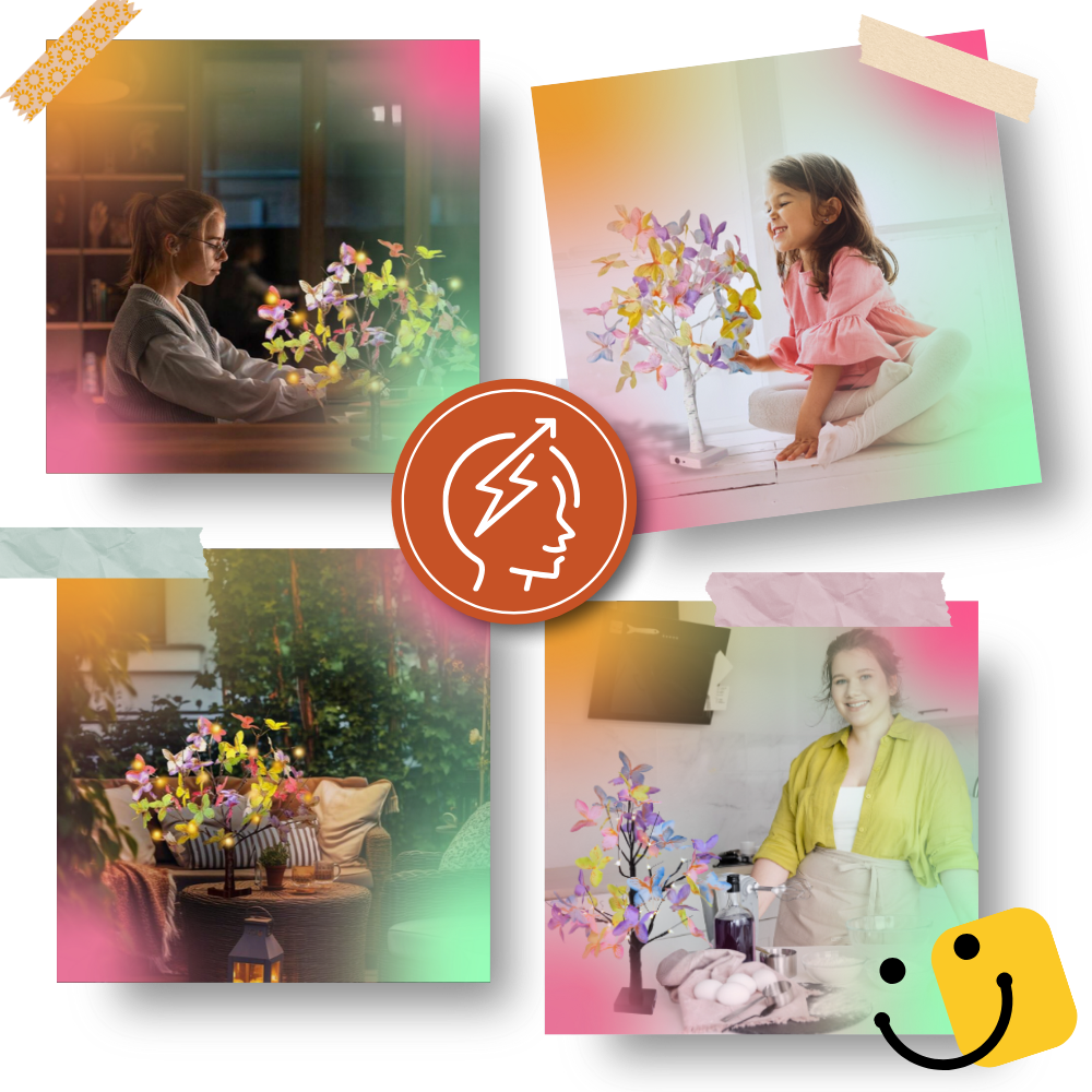 The Tranquil Fairy Light Tree features a delicate, nature-inspired design with graceful branches adorned by butterfly accents, creating an aesthetic that is both elegant and serene. Its soft, warm hues and intricate details mimic the soothing beauty of nature, making it a visually calming presence in any space. This carefully crafted design captures the essence of tranquility, subtly influencing the ambiance of the room. By blending natural elements with a refined aesthetic, the tree fosters a sense of harmony and balance, encouraging relaxation and emotional well-being.